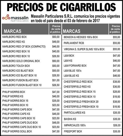 British American Tobacco (ex “Nobleza Piccardo”) aumenta los precios de , Los nuevos precios de los cigarrillos.